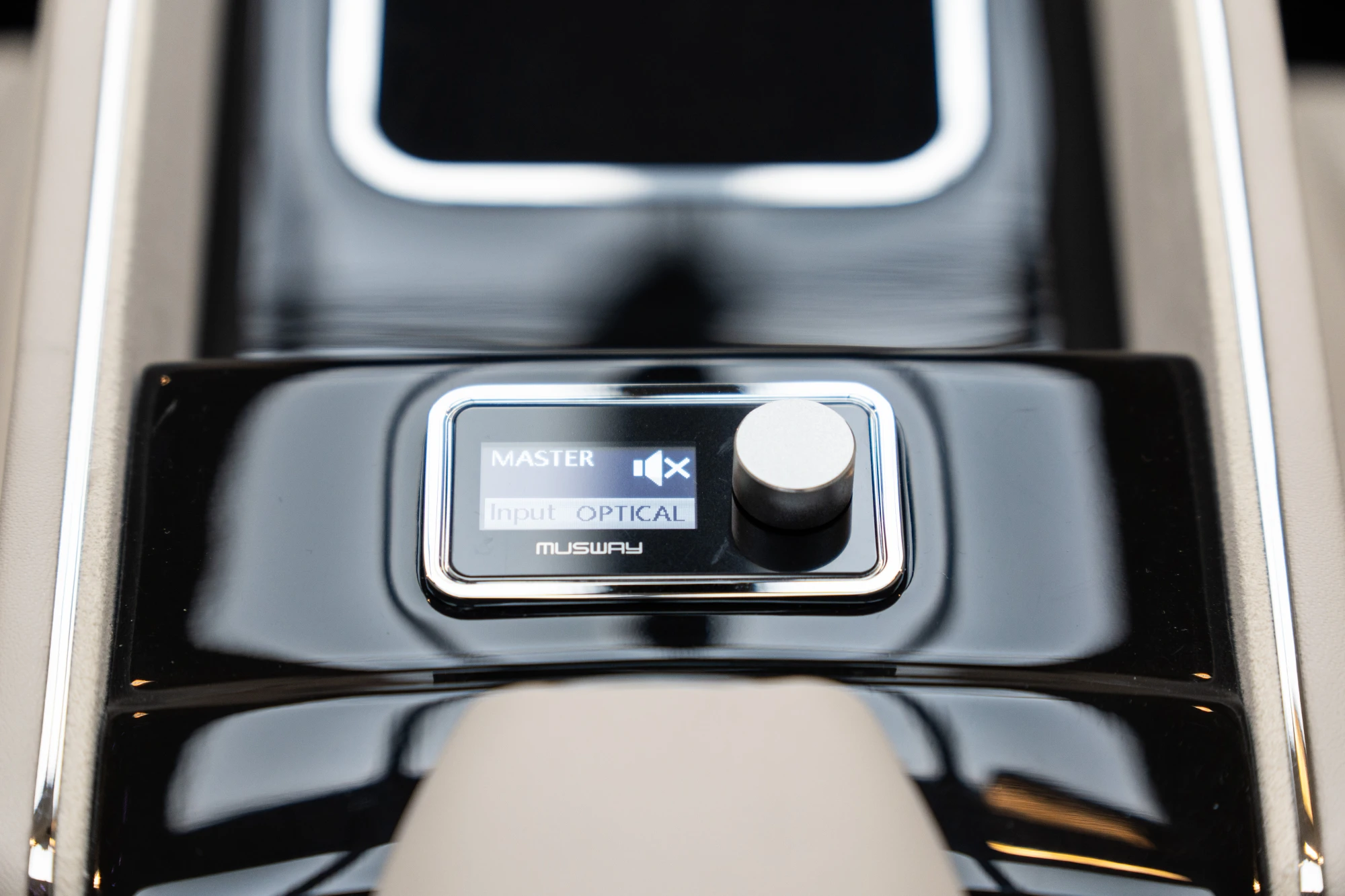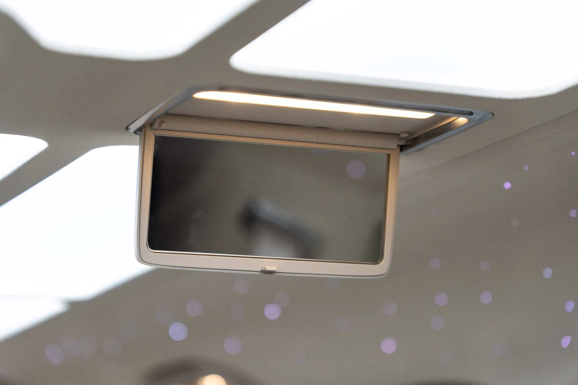 Separates the VIP Area from the driver with a mechanism to lower and raise the TV