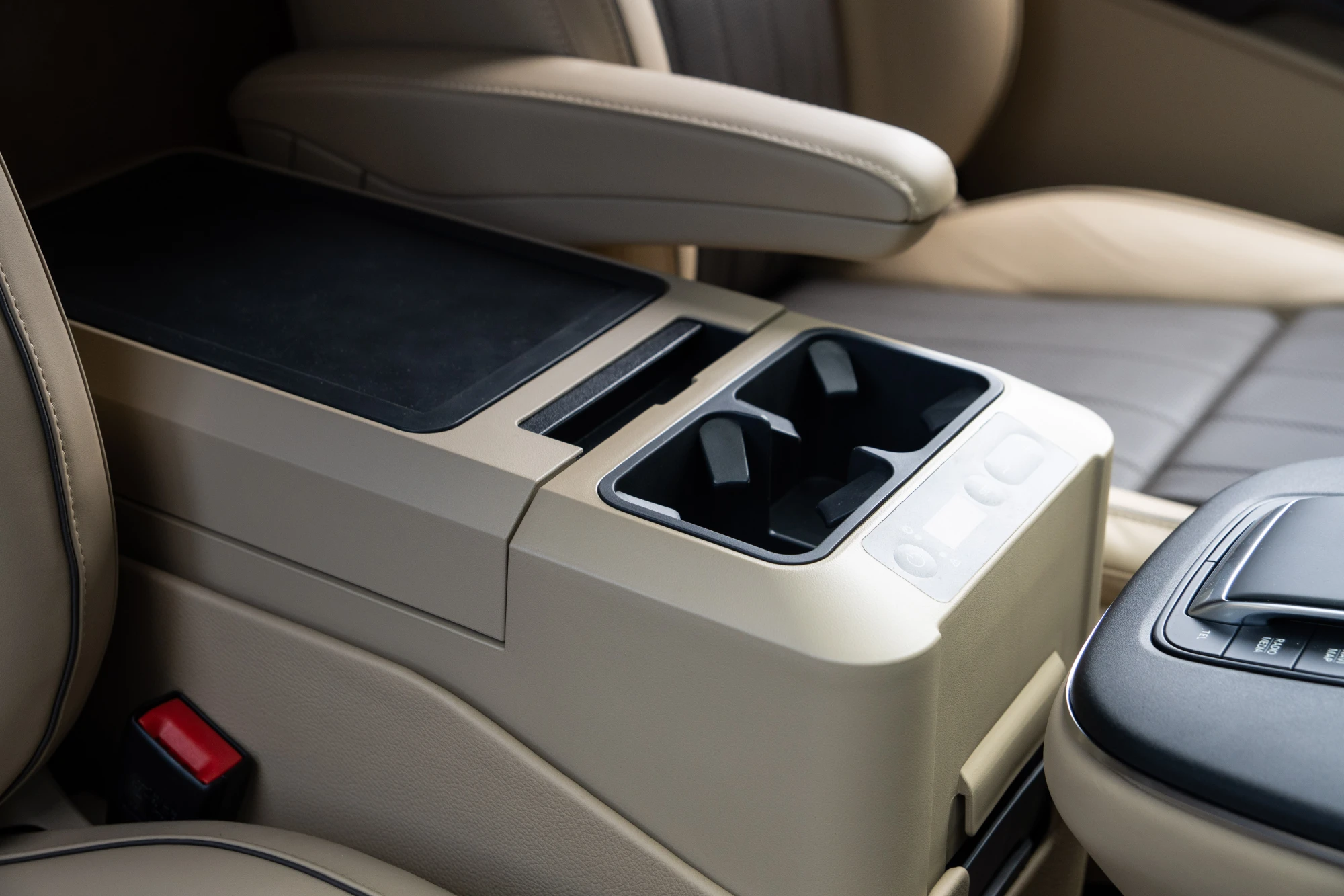 Installed between the driver and passenger seats