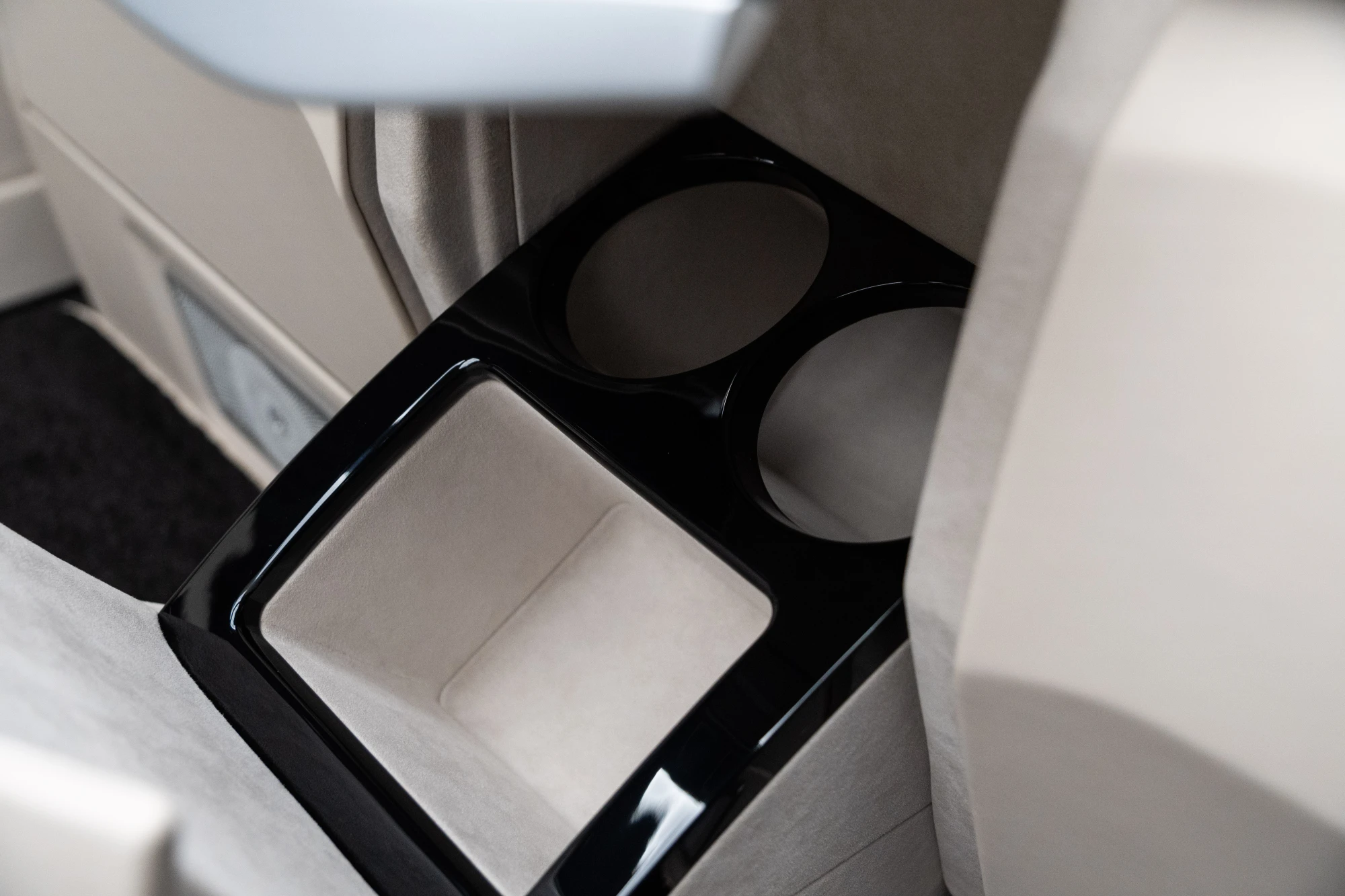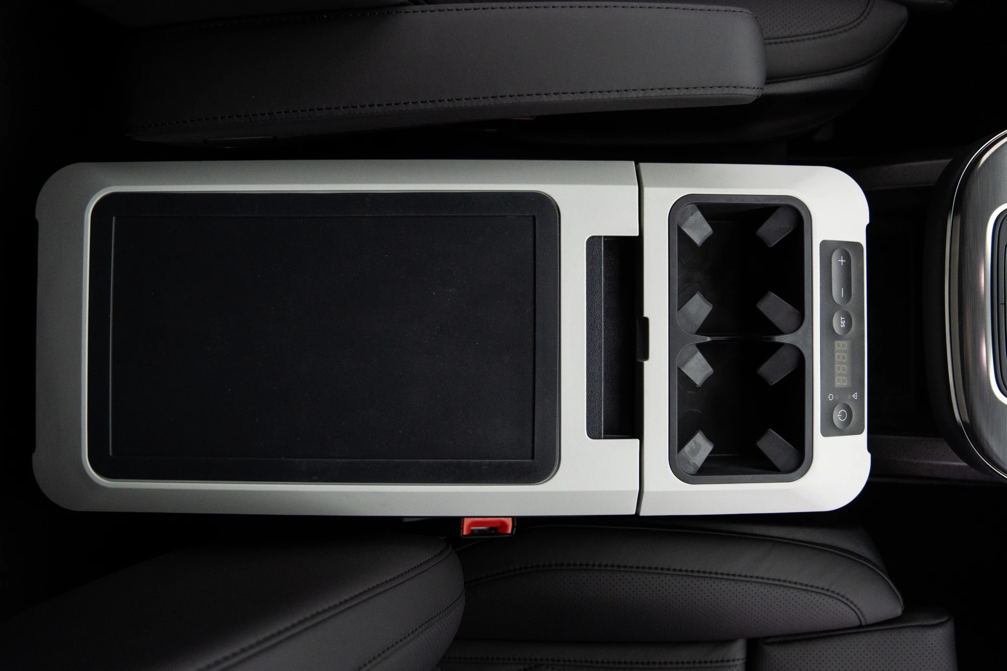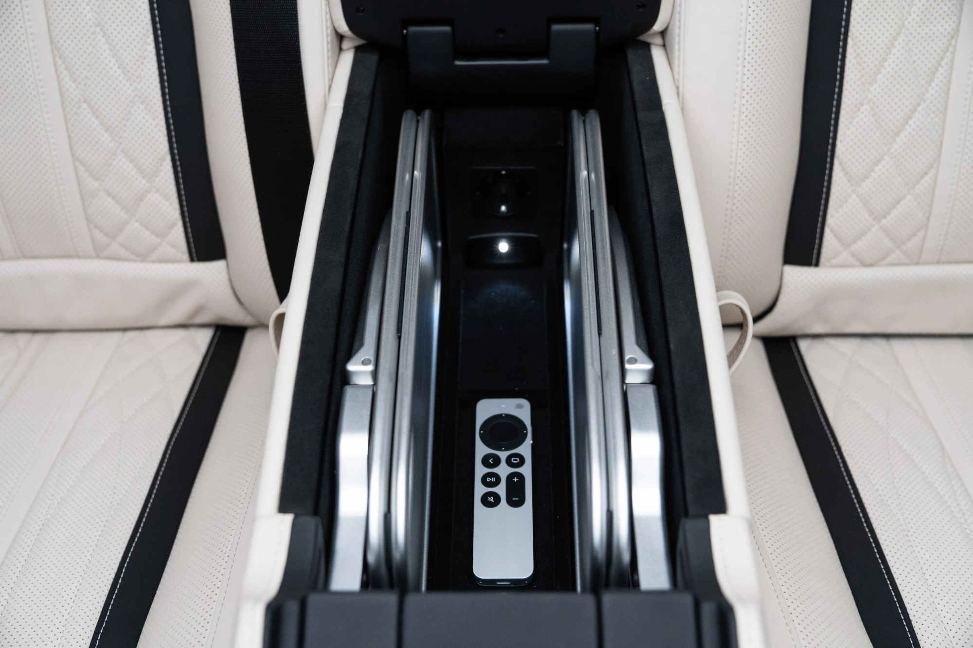 Separates the VIP Area from the driver with a mechanism to lower and raise the partition glass and the TV