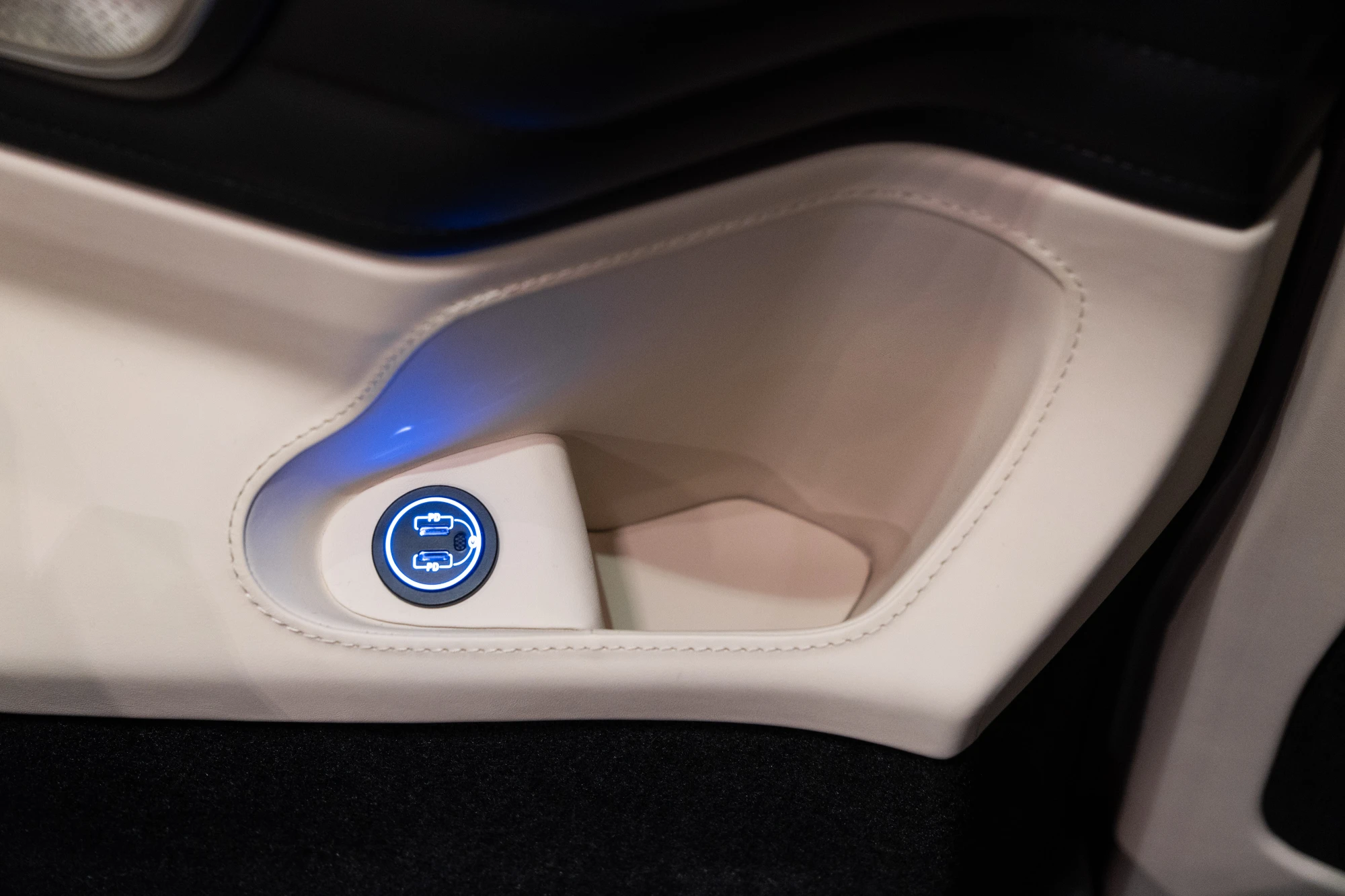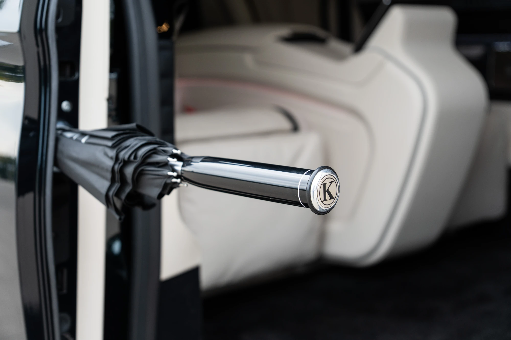 The umbrella is conveniently stored in the side door, allowing passengers to easily access it in case of unexpected rain.