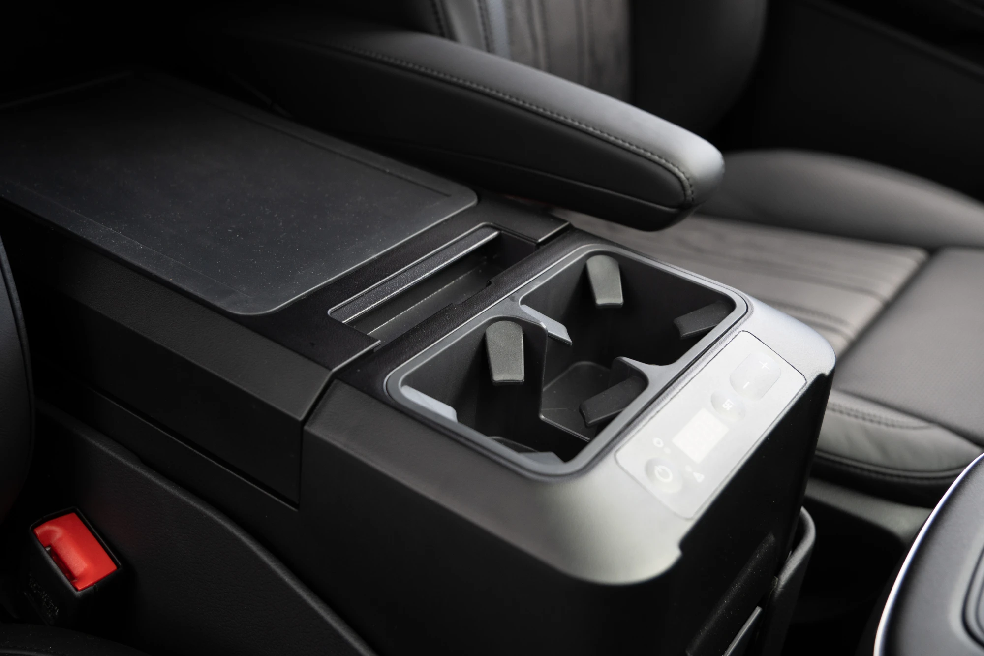 Installed between the driver and passenger seats
