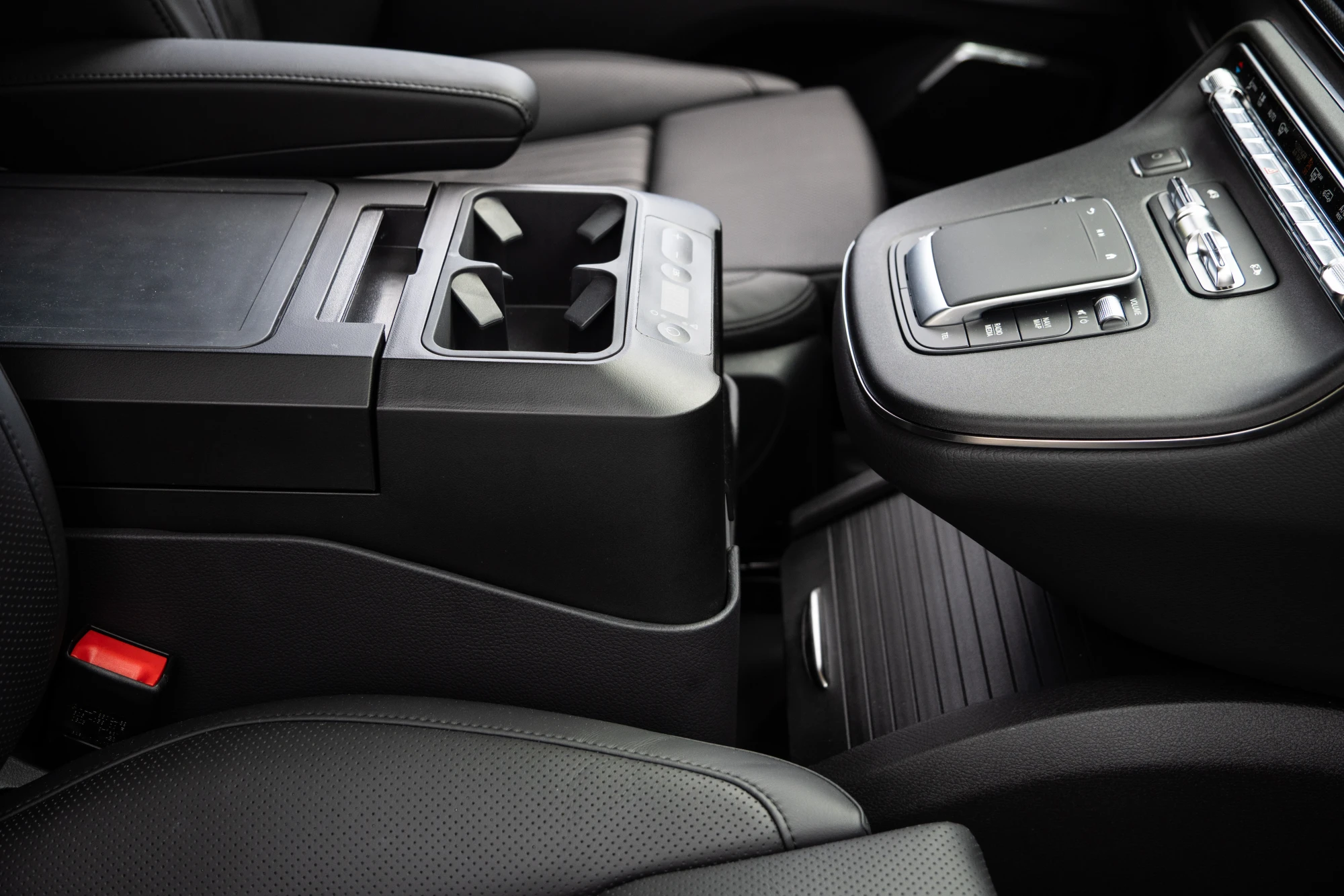 Separates the VIP Area from the driver with a mechanism to lower and raise the partition glass and the TV