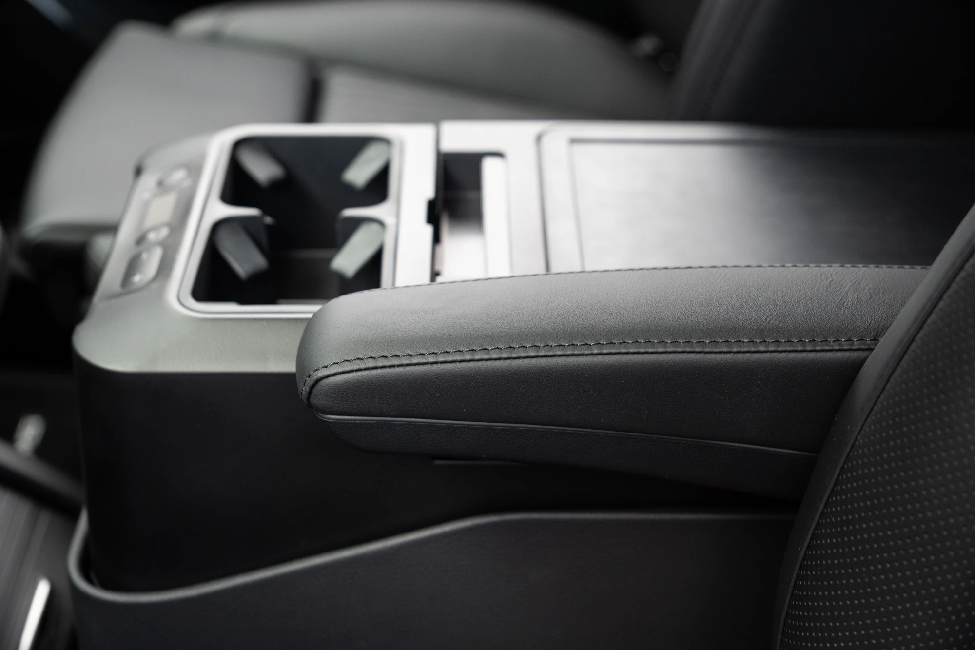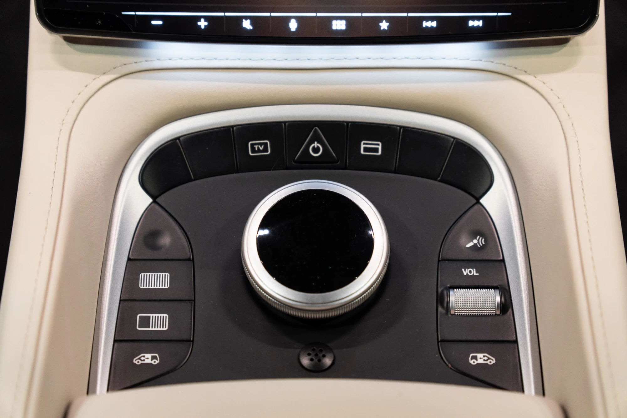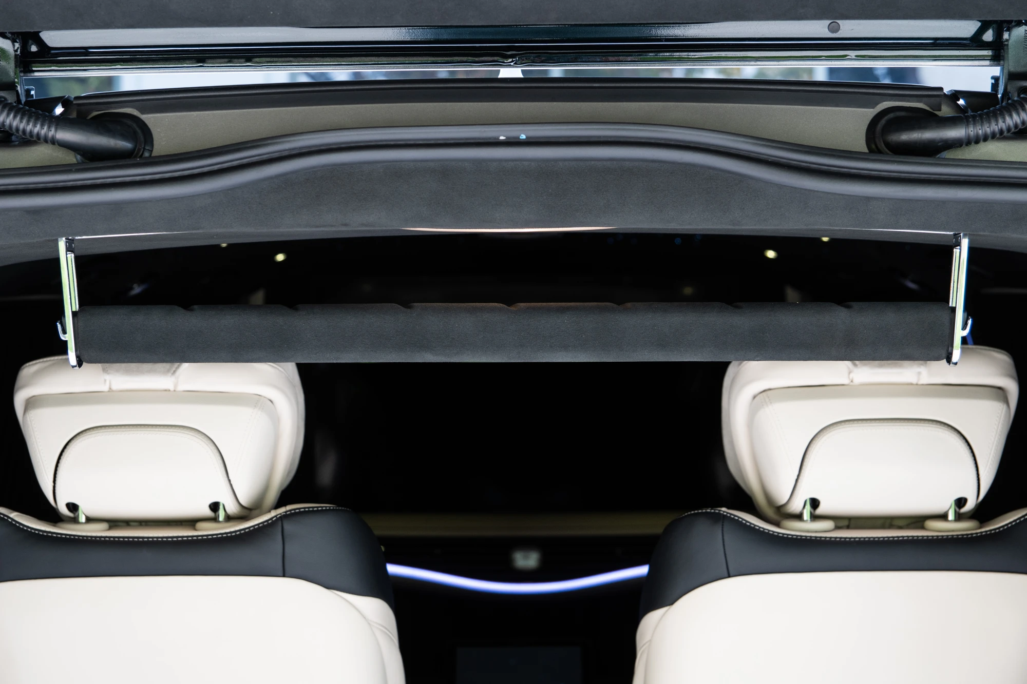Separates the VIP Area from the driver with a mechanism to lower and raise the partition glass and the TV