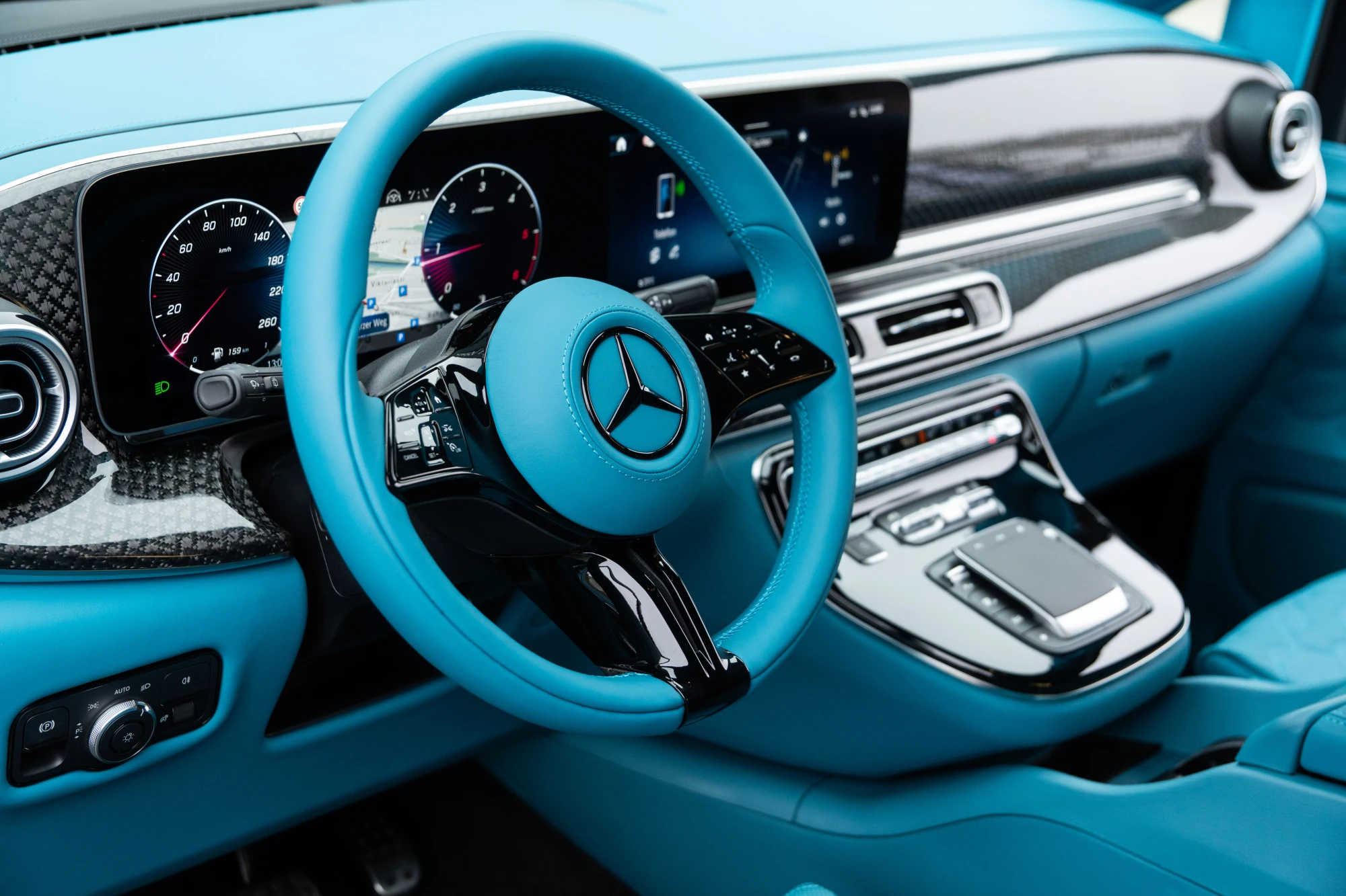 The Carbon Look package offers an exclusive option where all wooden elements in the vehicle interior are replaced with high-quality carbon to create a modern and sporty aesthetic.