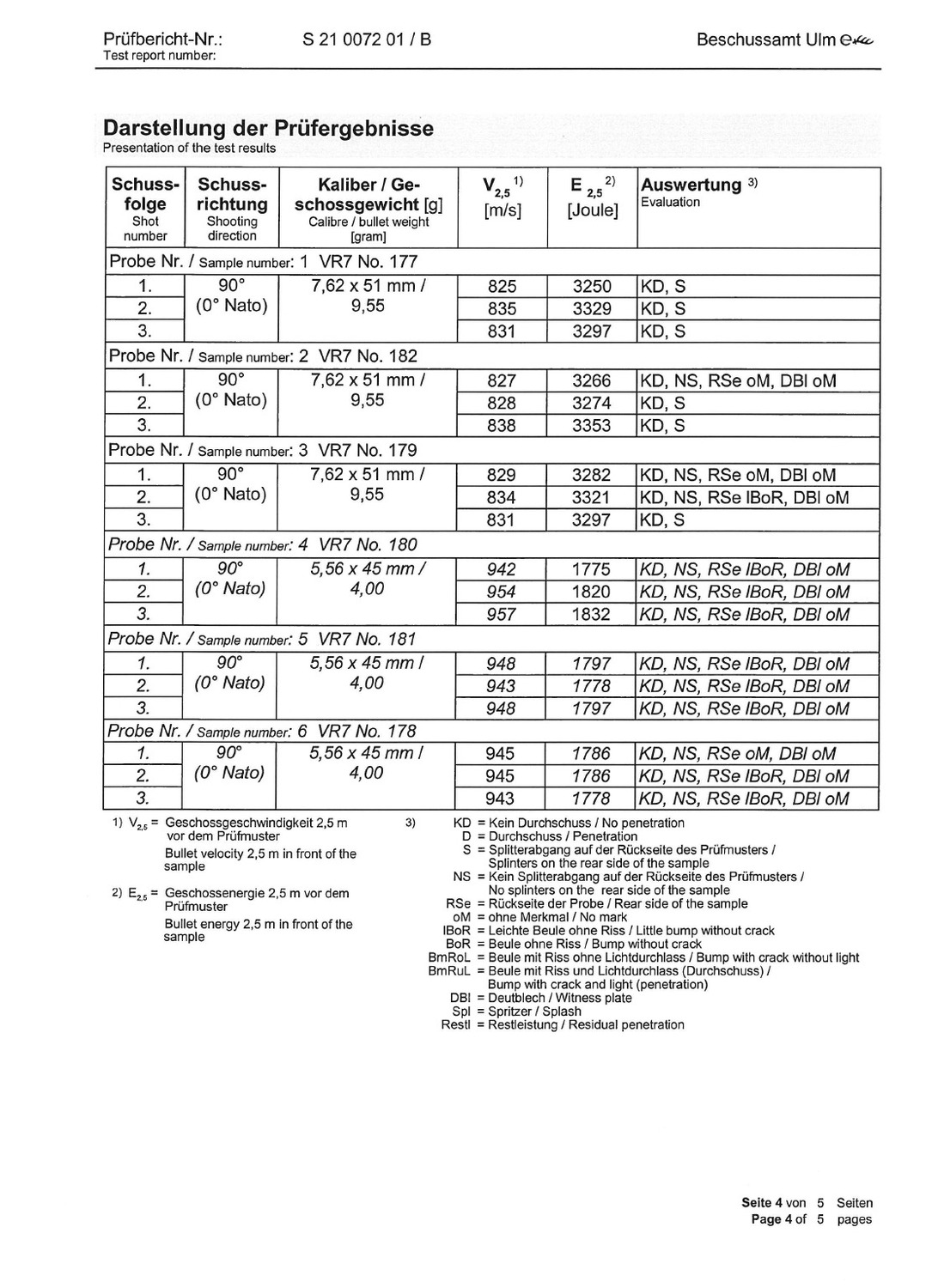 Die folgenden Verglasungen entsprechen der Schutzklasse gemäß DIN EN 1063 BR4 bis BR6 NS: