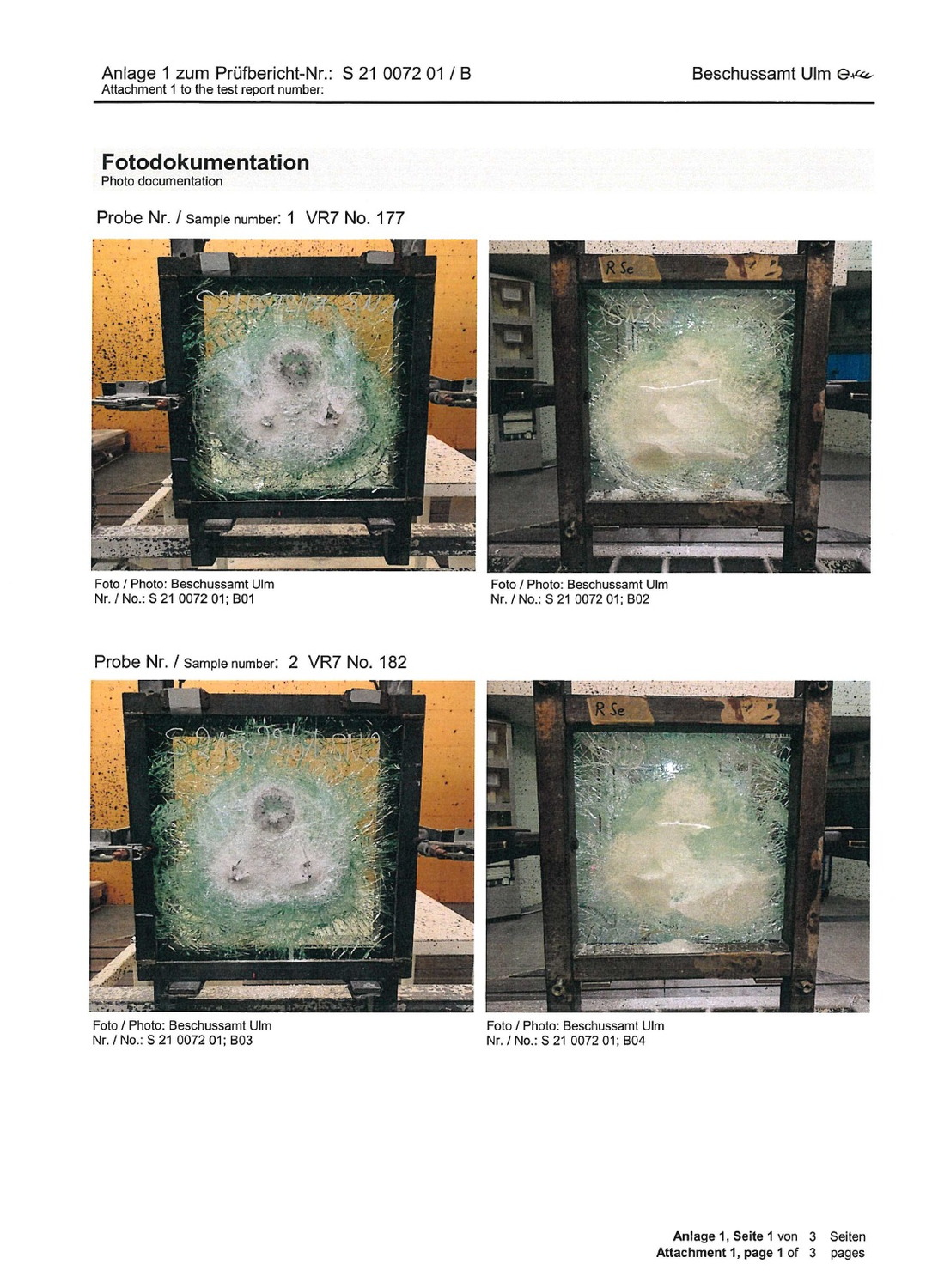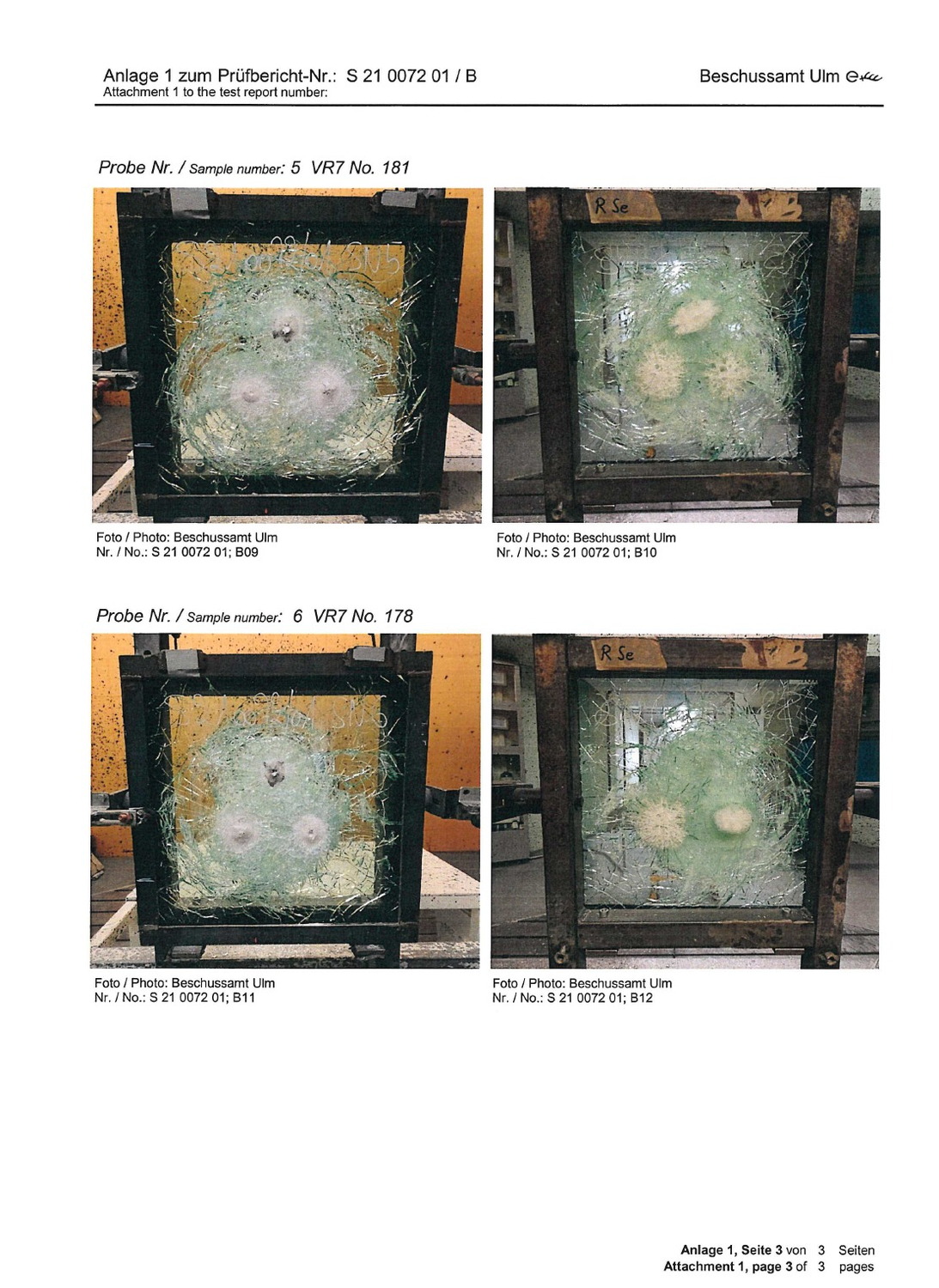 Es wird ausdrücklich hervorgehoben, dass sich die Zertifizierungsunterlagen konkret auf die verwendeten Komponenten (Glas/Stahl) beziehen und nicht lediglich auf eine deklarierte Schutzklasse.