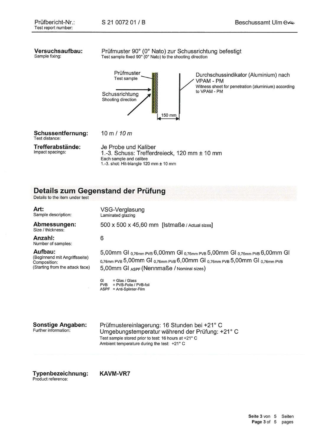 Die transparente Panzerung besteht aus beschusshemmendem Glas mit Polycarbonatfolie, wodurch der Splittereffekt (Spalling) nahezu vollständig eliminiert wird.