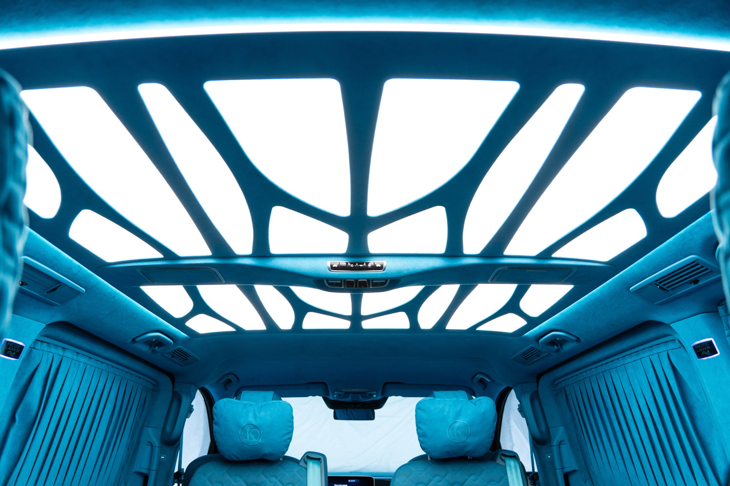 Der Dachhimmel ist eines der prägendsten Elemente dieses Fahrzeugs. Sein Design wurde von den Prinzipien Antonio Gaudís inspiriert. Fließende, organische Linien formen eine Lichtstruktur, die an moderne Architektur erinnert.