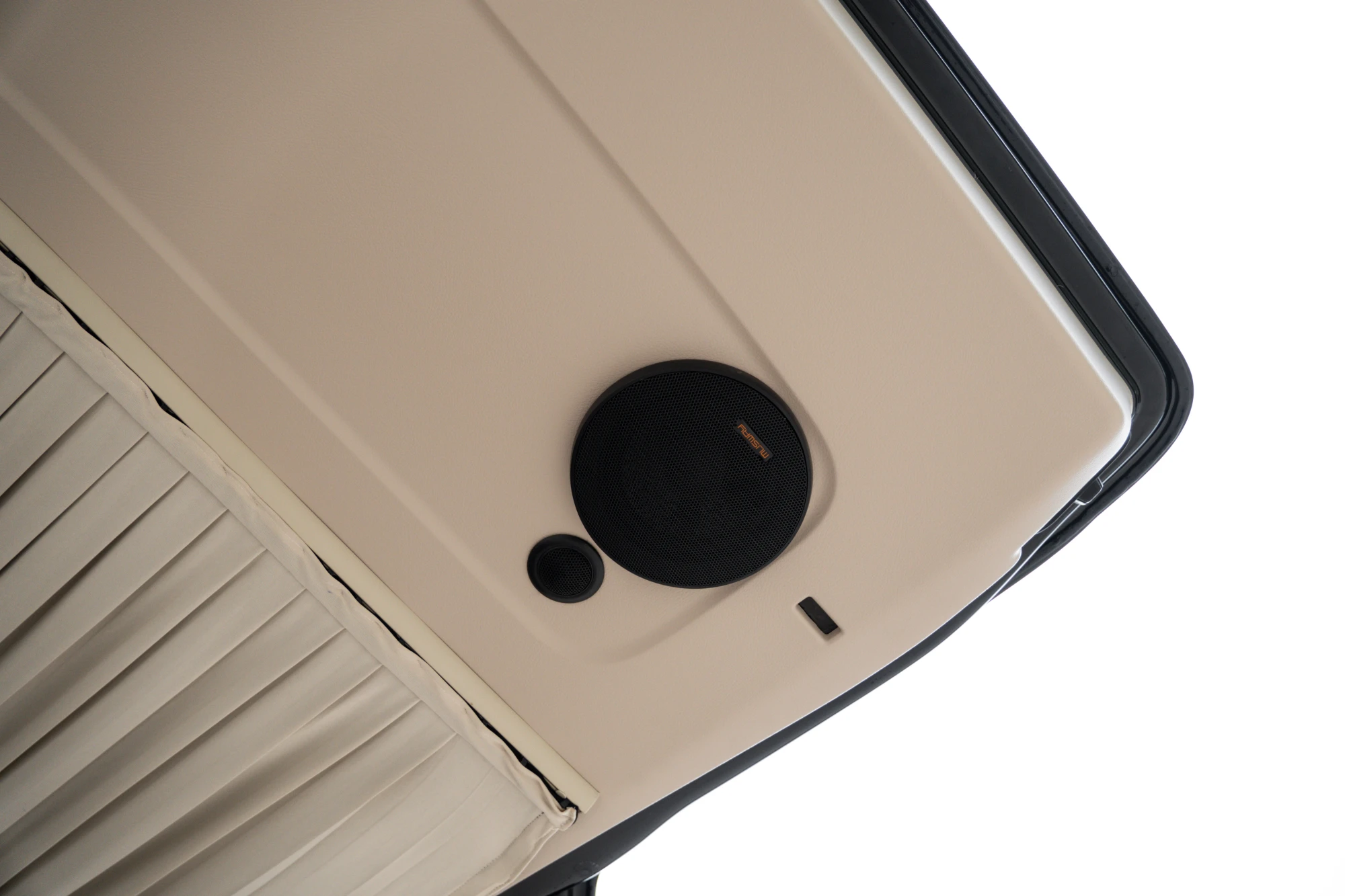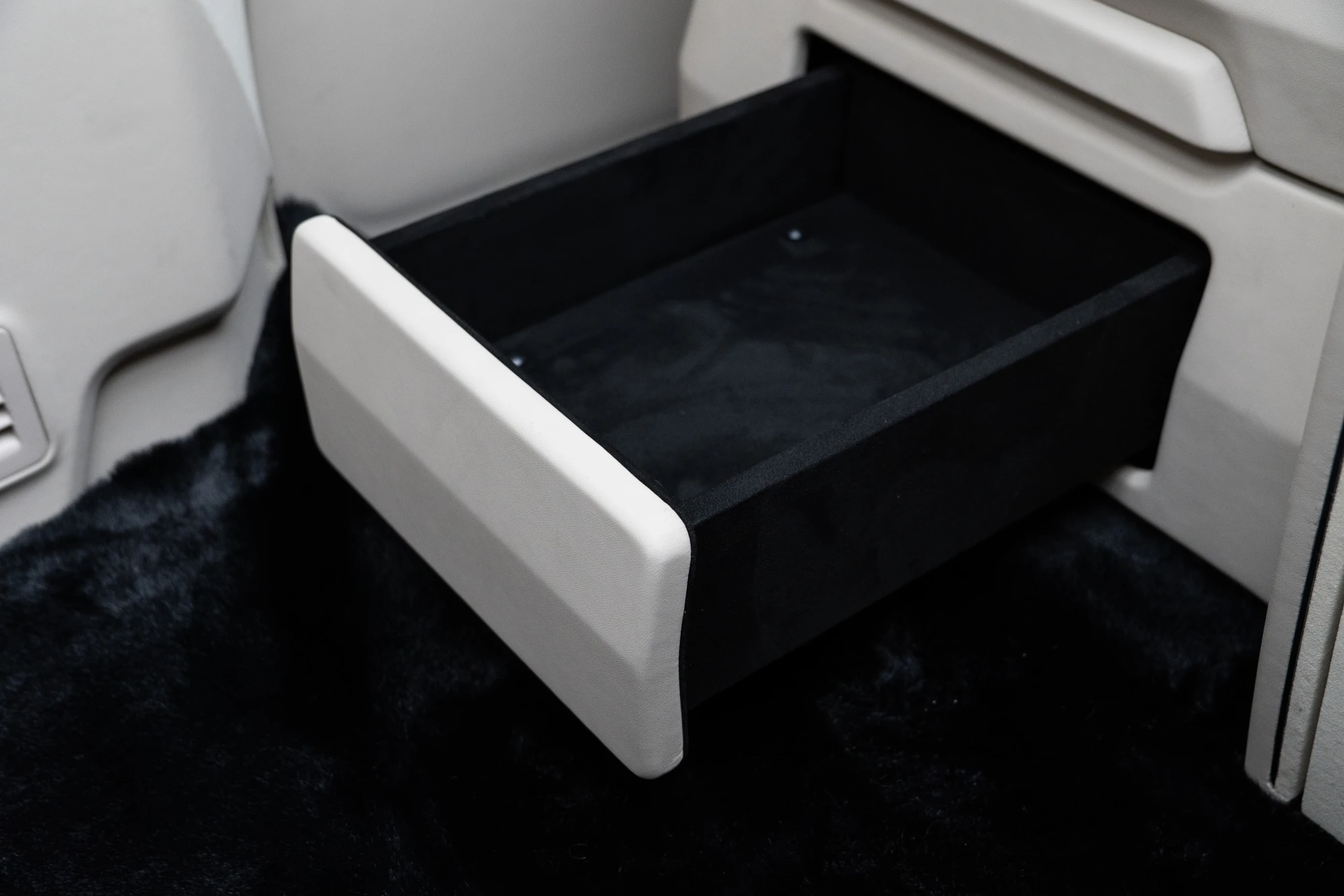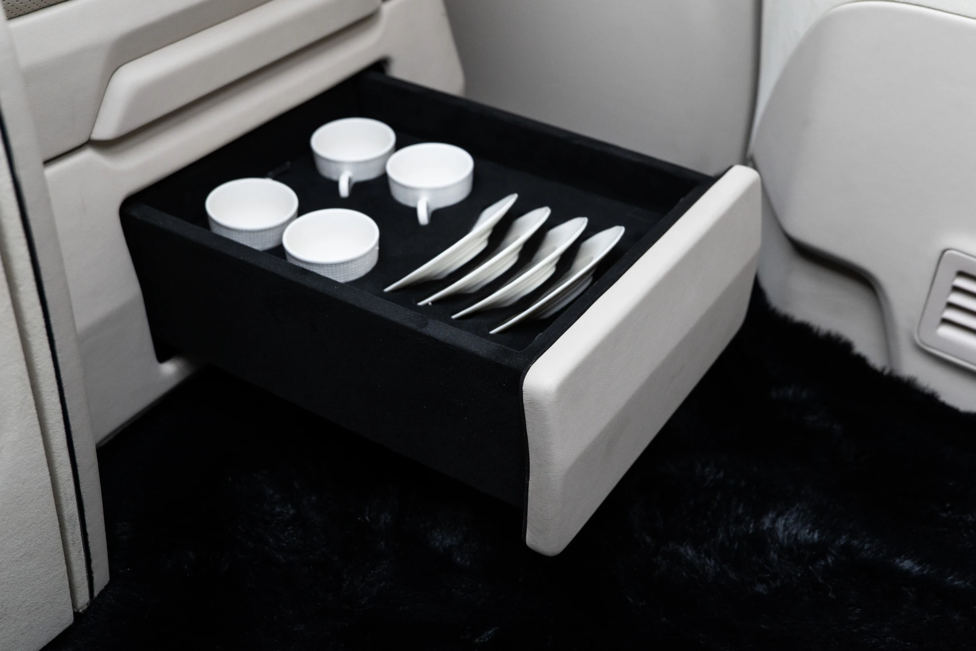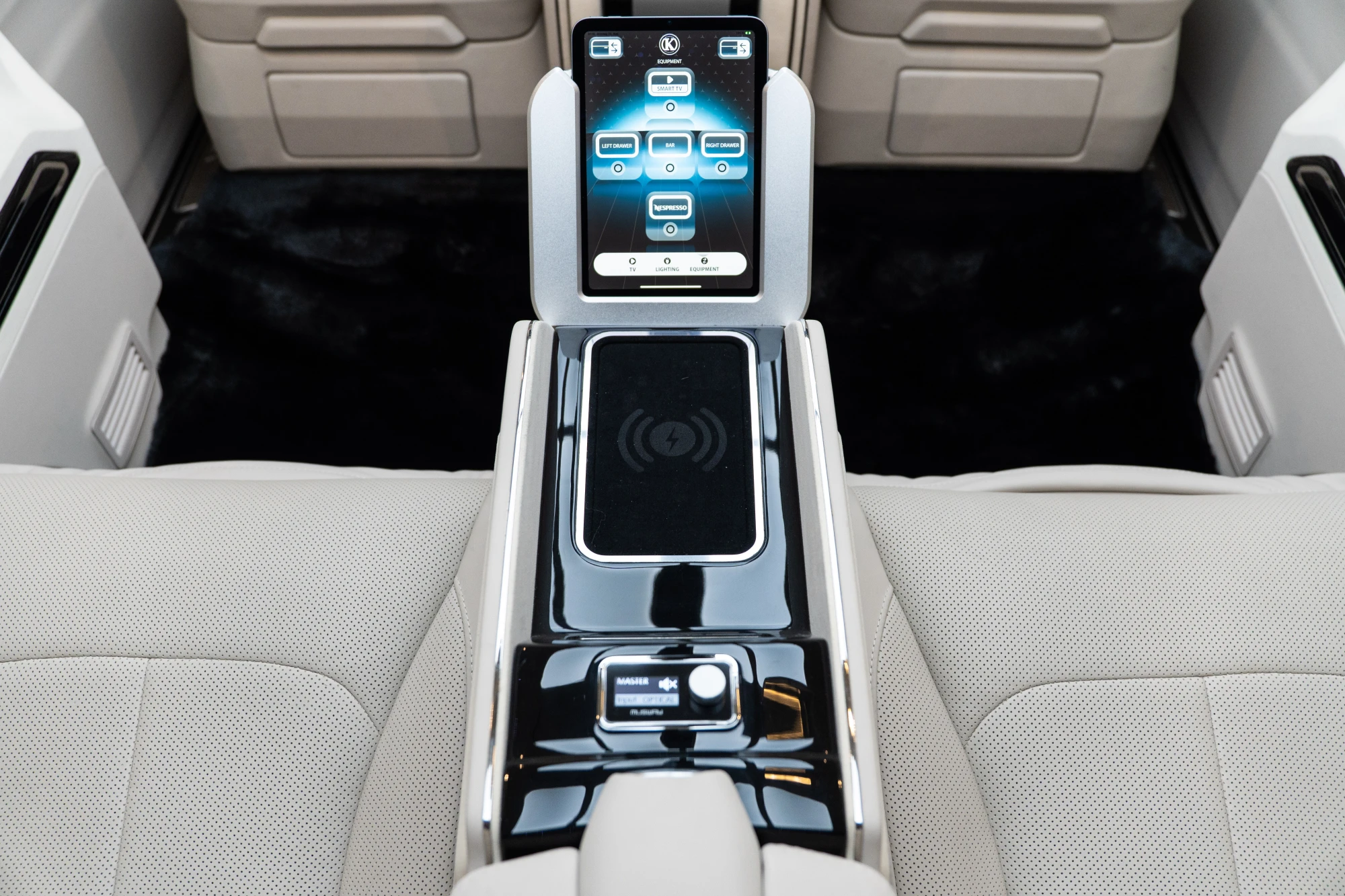 Система с опускным и подъемным телевизором отделяет VIP-салон от водительского отсека