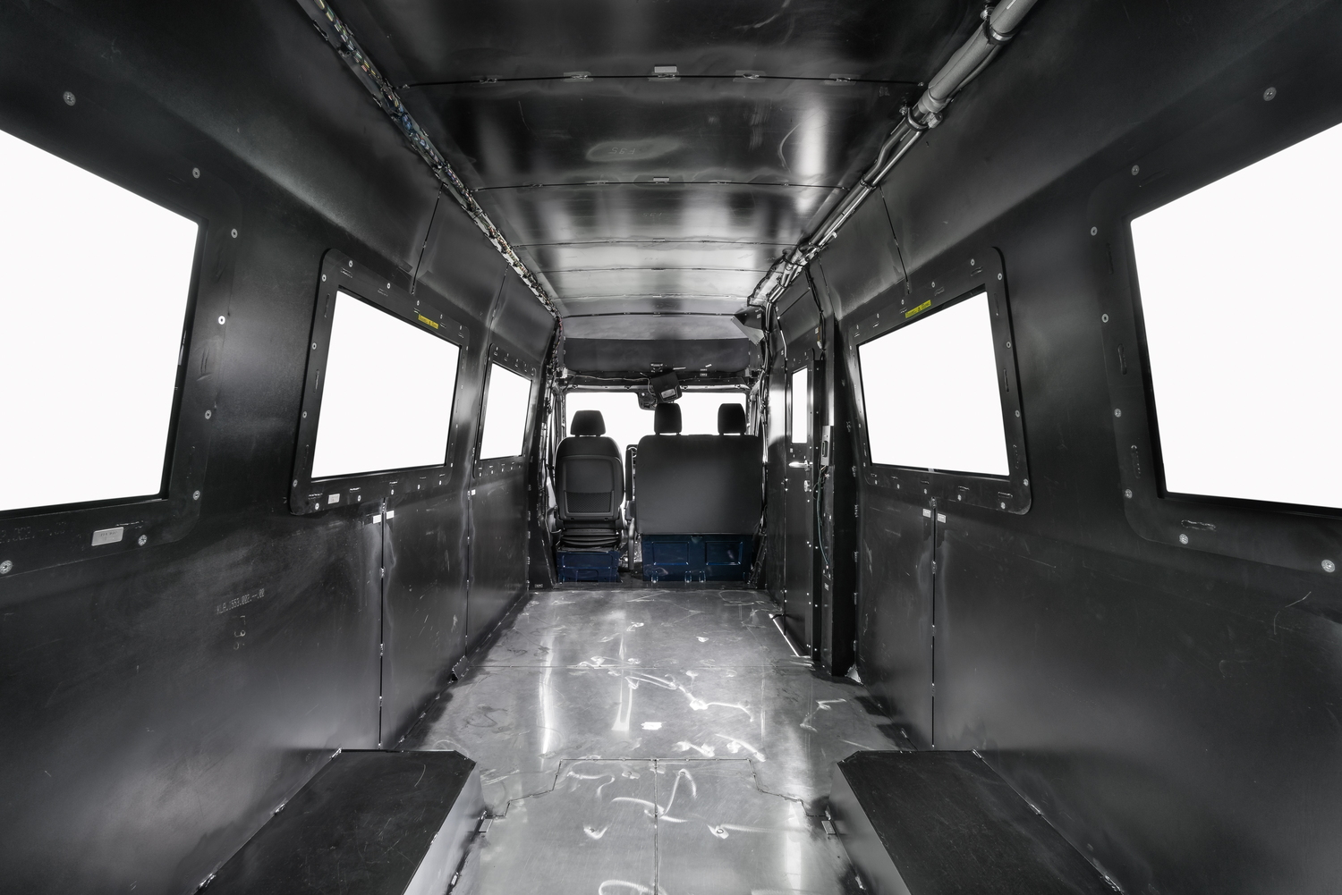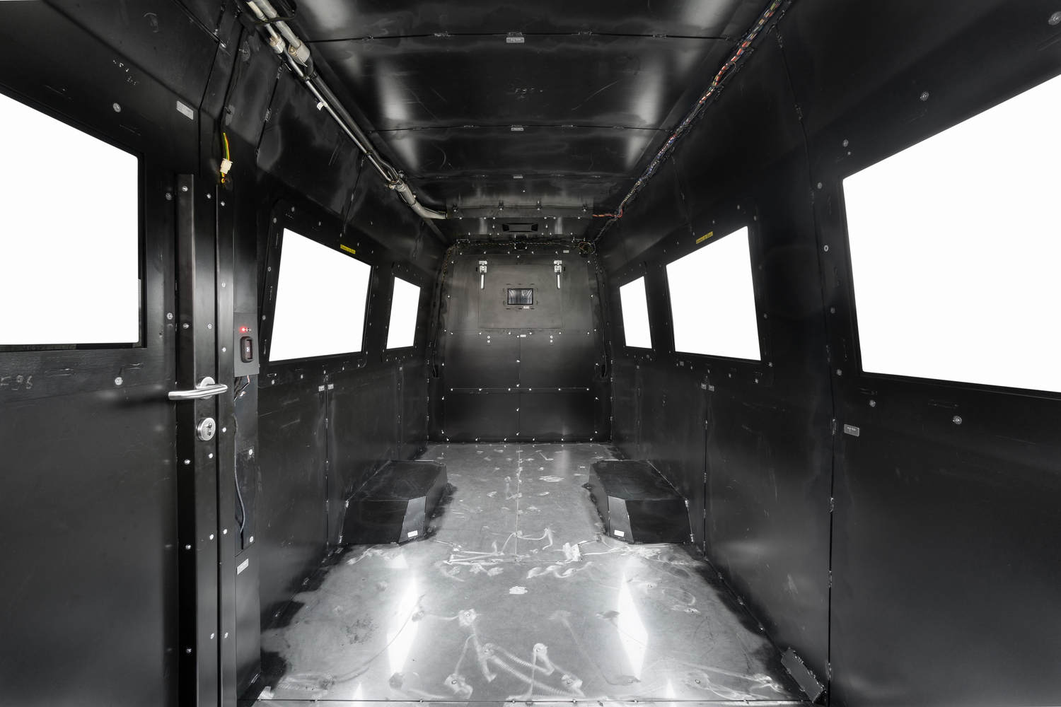 Выполняется конструкция пола, протестированная в соответствии с действующими правовыми нормами и стандартами ЕС. С производственной точки зрения это включает изготовление несущей базы, согласование с точками крепления сидений, кабельными проходами, а также компонентами брони.