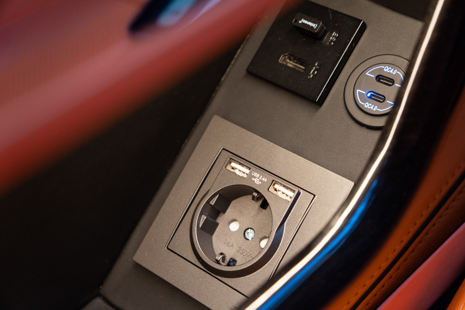 В интерьере предусмотрены USB-разъемы. Дополнительно интегрируются следующие типы подключений: розетка 220V, USB-разъем для передачи данных, USB-разъем для функции зарядки, главный выключатель в VIP-зоне, а также HDMI-разъем. С производственной точки зрения это включает прокладку силовых и сигнальных линий, установку преобразователей напряжения, а также доступное позиционирование разъемов для пассажиров.