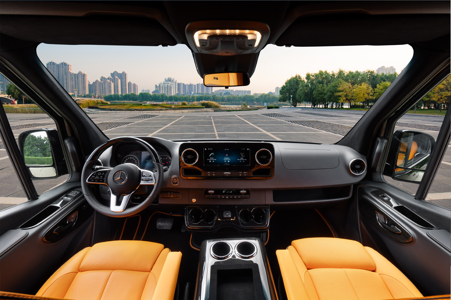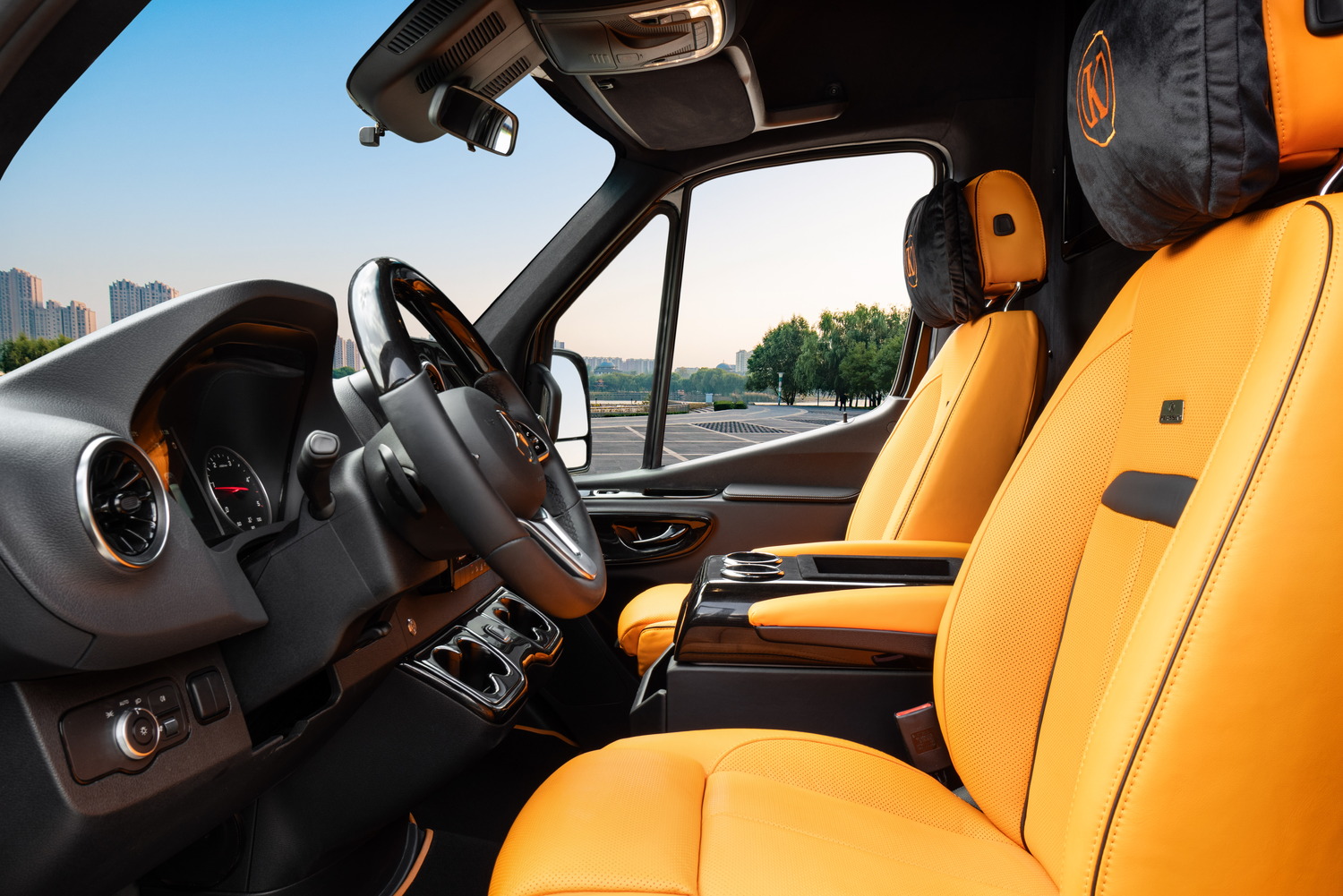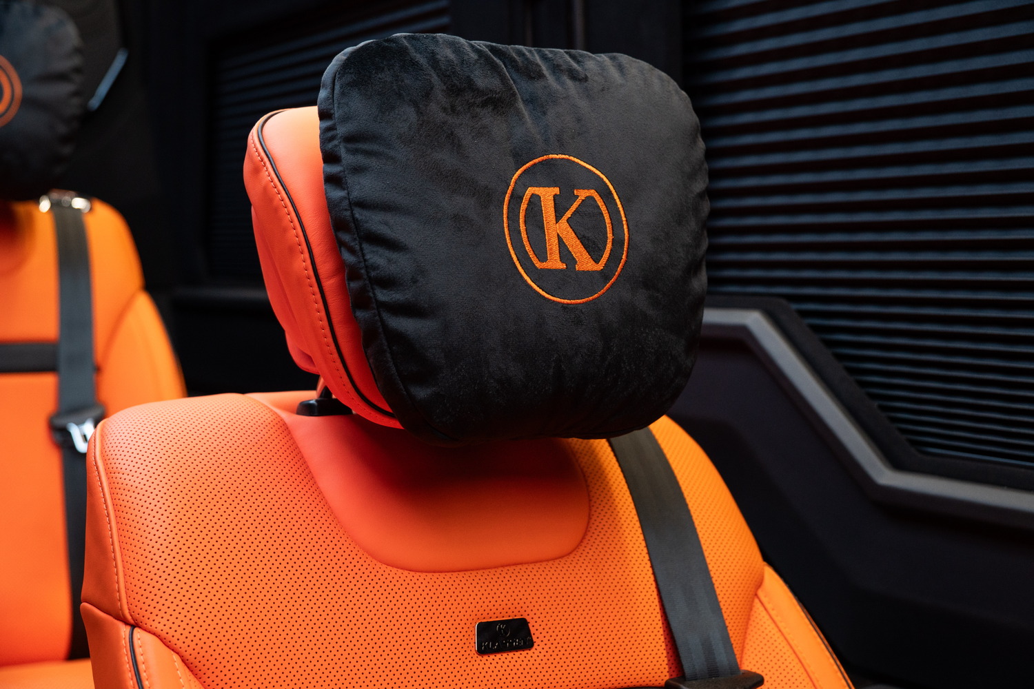 Сиденья водителя и переднего пассажира перетягиваются либо облицовываются в соответствии с исполнением проекта, согласованным по материалам и уровню качества с VIP-зоной. Аналогично облицовываются двери водителя и переднего пассажира, чтобы передняя часть автомобиля соответствовала общему стандарту исполнения.