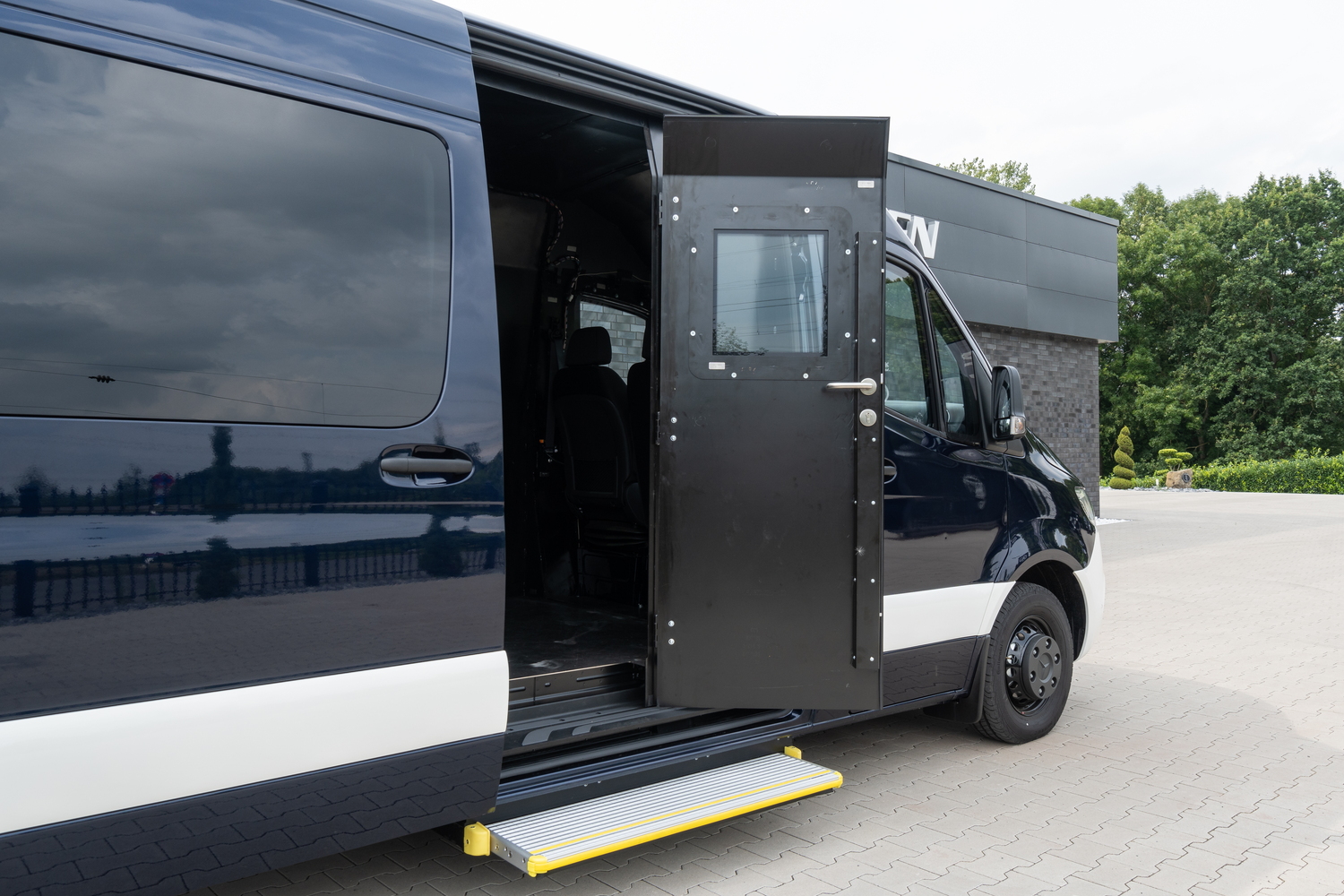 Проект реализуется как полная конверсия Mercedes-Benz Sprinter 519 Panel Van с левым рулём, 2,0-литровым дизельным двигателем и 9-ступенчатой автоматической коробкой передач. Базовый автомобиль предоставляется заказчиком. После этого выполняется комплекс работ, включающий бронирование, интеграцию специальных систем и создание VIP-зоны в соответствии с технической спецификацией.