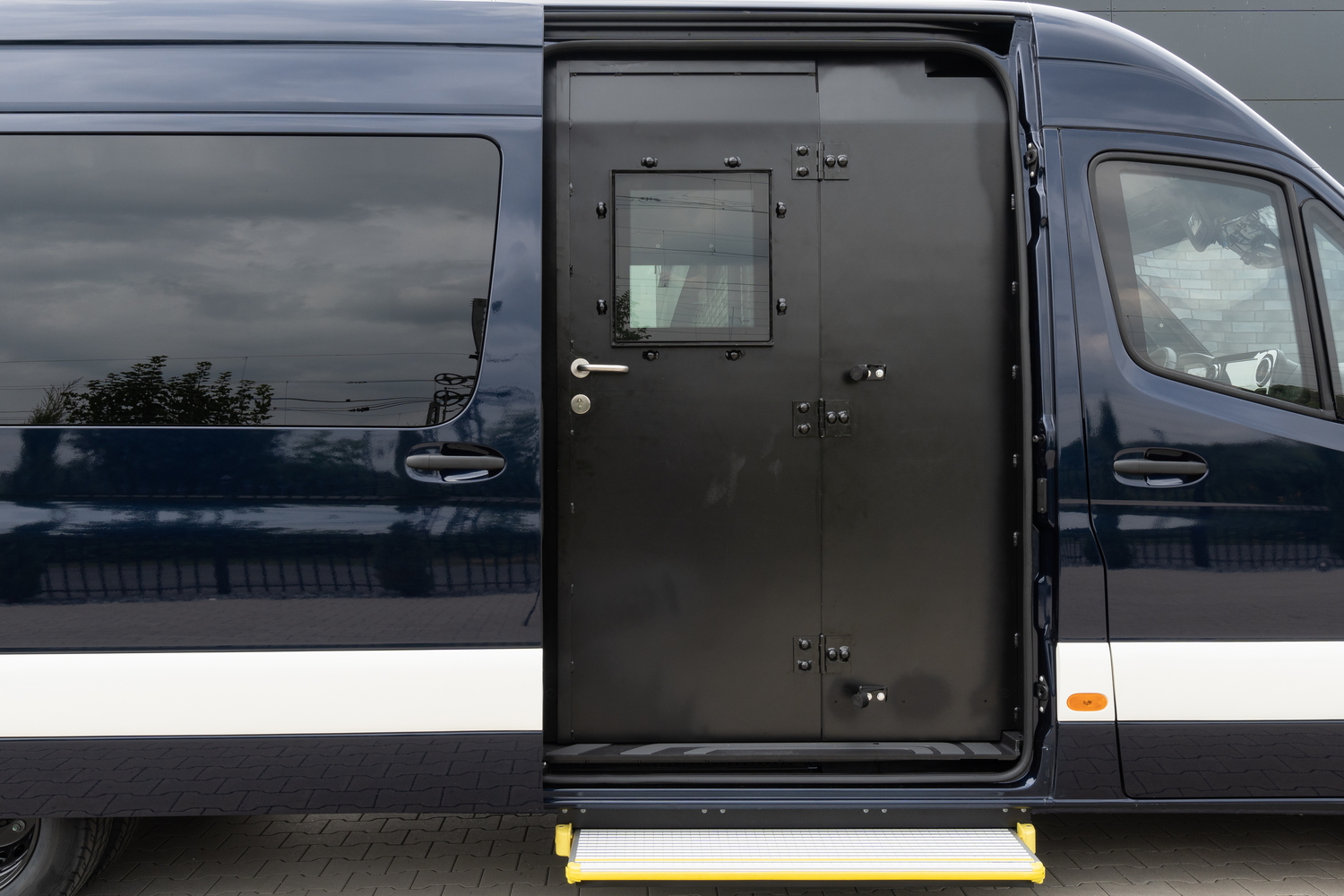 Стойки кузова конструктивно адаптируются: они выполняют двойную функцию — обеспечивают баллистическую защиту и одновременно воспринимают нагрузку усиленных петель и бронированных дверей, передавая её далее по конструкции. Такая адаптация необходима для долгосрочной эксплуатации без перекосов, просадки или преждевременного износа.