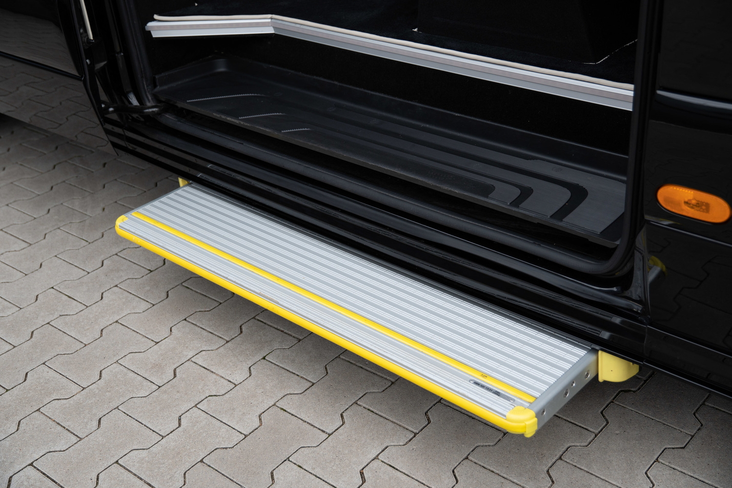 Для улучшения комфорта посадки и высадки интегрируется электрическая подножка. Она геометрически согласовывается с зоной порогов, боковыми юбками и бортовой сетью.